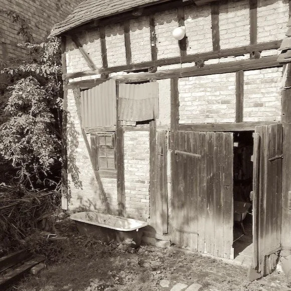 Versteckt hinter verschlissenen Scheunentoren, angebunden an einen alten Werkstattraum und umgeben von allerlei Ramsch und Baumaterialien offenbart sich ein Kabuff, das sich hervorragend als Holzlager eignet.