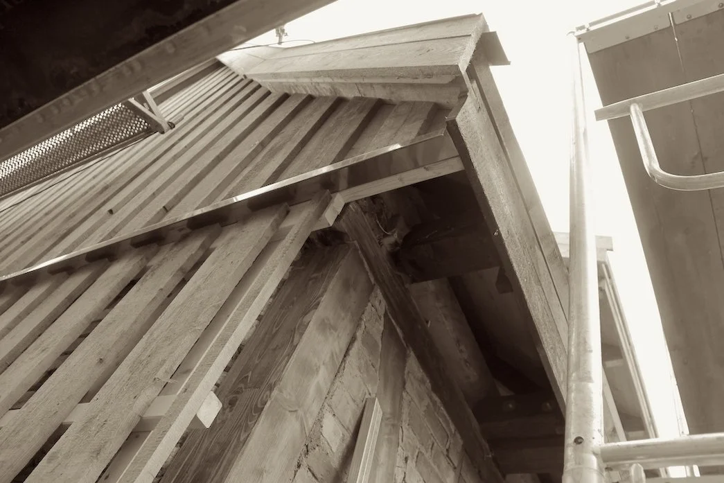 Ansicht auf die Unterkonstruktion der Lärchenholzverschalung