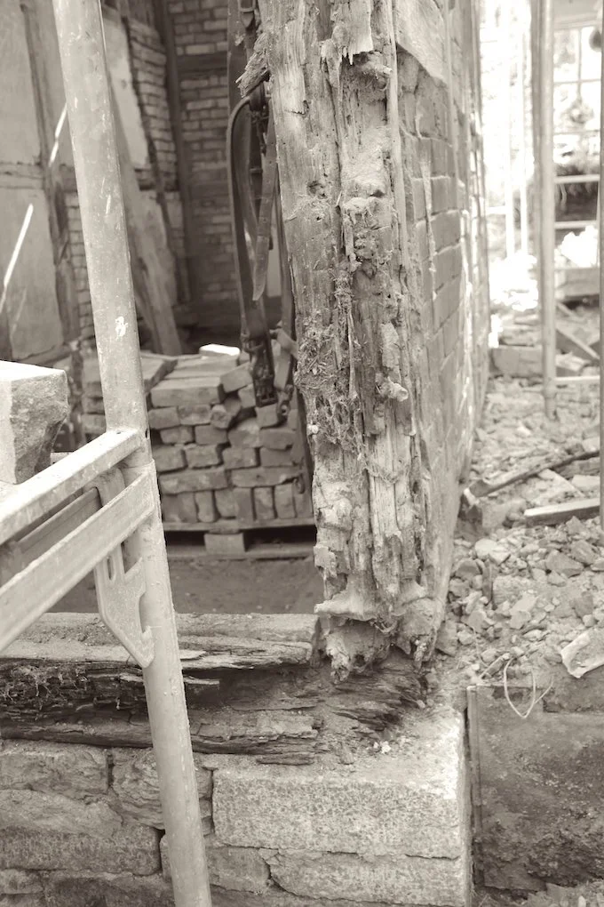 Freigelegte „Balkenkaries“ nach Herauslösen der Gefache
